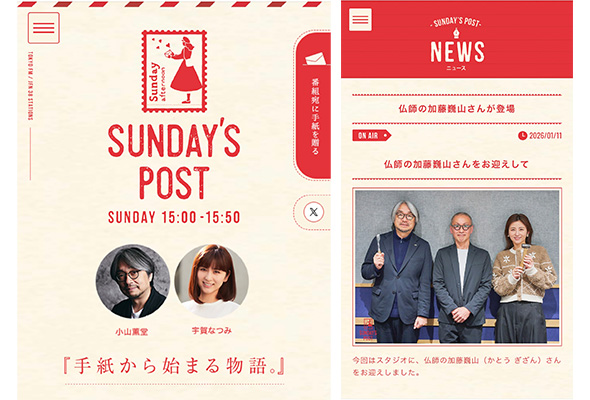 I will be appearing on “SUNDAY’S POST,” which will be broadcast on TOKYO FM 80.0 on January 10, 2026 (Sat.), 15:00–15:50. The program is hosted by Kundo Koyama and Natsumi Uga. Please tune in. The program will also be available on radiko for one week after the broadcast.